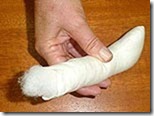 | 4. Vire para o direito e encha com a fibra acrílica. Repita o mesmo procedimento com os braços. | |